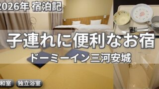 東京から地元に帰省する際に家族で『天然温泉 三州の湯 ドーミーインEXPRESS三河安城』に宿泊いたしました。2歳児と0歳児の子供連れでの宿泊となりましたが、快適に過ごせましたので宿泊記を記載いたします。